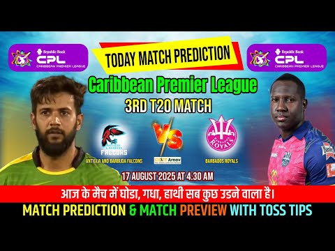 The Caribbean Premier League 2025 continues with an exciting contest between Antigua and Barbuda Falcons (ABF) and Barbados Royals (BR). This is the CPL 3rd Match at the Sir Vivian Richards Stadium, Antigua. Fans are eager to know – Antigua Barbuda vs Barbados CPL3rd Today Cricket Prediction, Who will win today match, 8/17/2025.