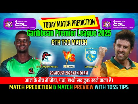 This St Kitts Nevis vs Lucia CPL6th Today Cricket Prediction, Who will win today match, 8/20/2025 features two strong teams with quality players in their ranks. The Patriots will be looking to utilize their home advantage at Warner Park, while the Kings aim to continue their winning momentum.